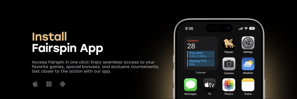 Svenska spelare kräver rörlighet. Därför har vi utvecklat en högpresterande Fairspin app baserad på PWA-teknik (Progressive Web App).