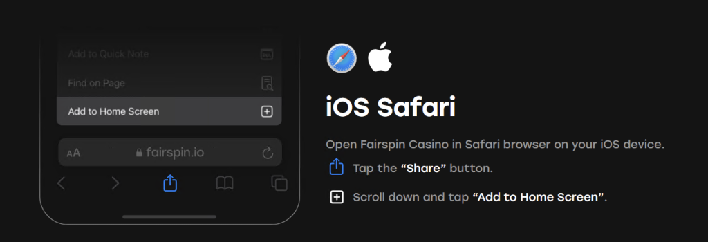 - Ăppna Safari och gĂ„ till den officiella domĂ€nen för Fairspin.
